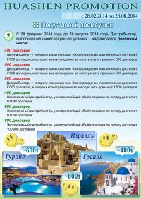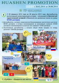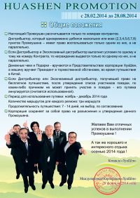 Китайская международная Корпорация «ХуаШен» с 28 февраля 2014 года до 28 августа 2014 года проводит следующий Промоушен