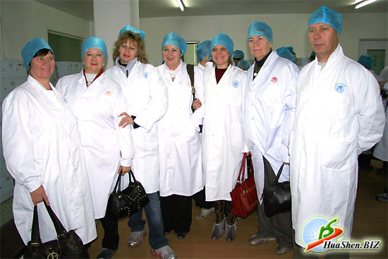Для просмотра производства нам пришлось переодеться в стерильную одежду Производство компании ХуаШен